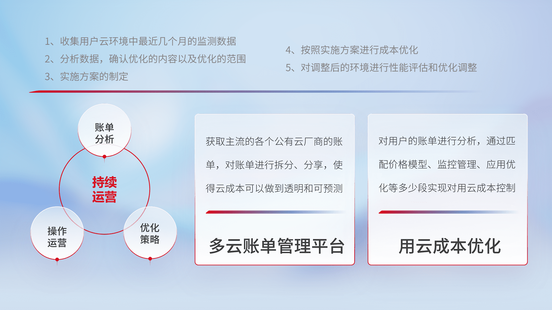 监控业务系统资源开销,,,对资源的消耗精确计量,,实现费用的透明化管理,,不断提升资源使用率,,调整资源购买方式,,,,降低资源费用成本,,,,用云成本可预测、、用云费用可优化,,云资源配额有据可依。。