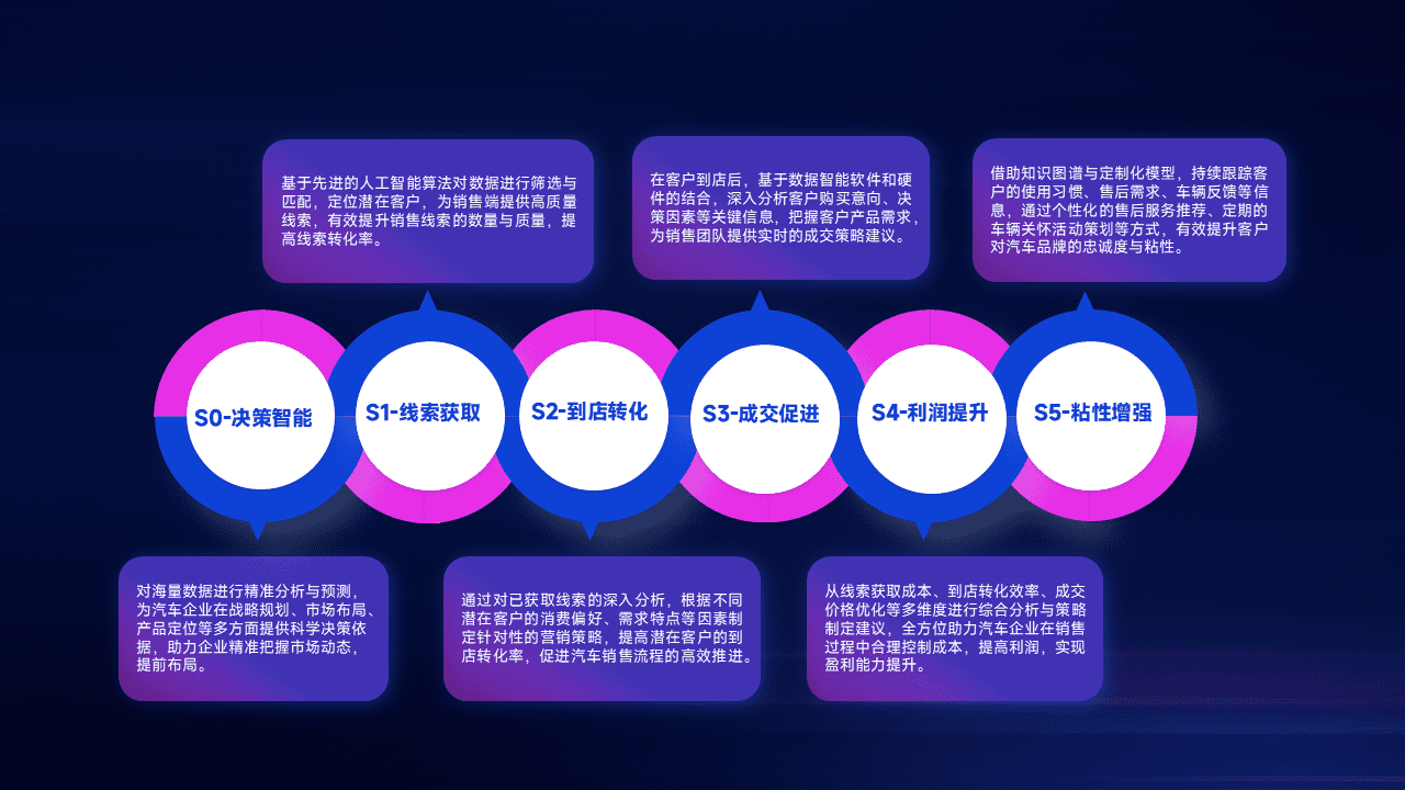 通过拓宽潜在客户来源、、、优化线索分配并提高到店转化率,,以增强销售效率。。同时,,利用线索数据不断优化分析模型,,有效提升转化率,,,,扩大营销影响力。。